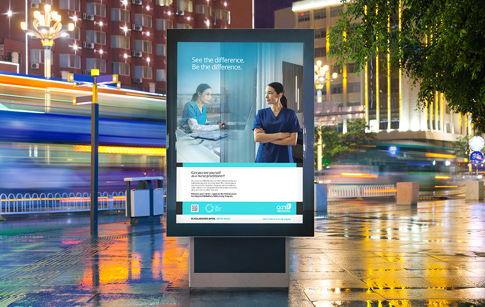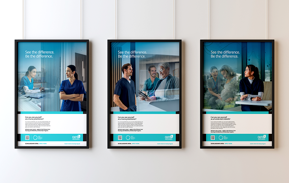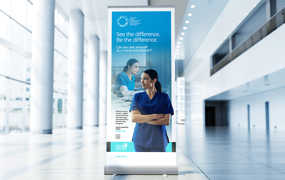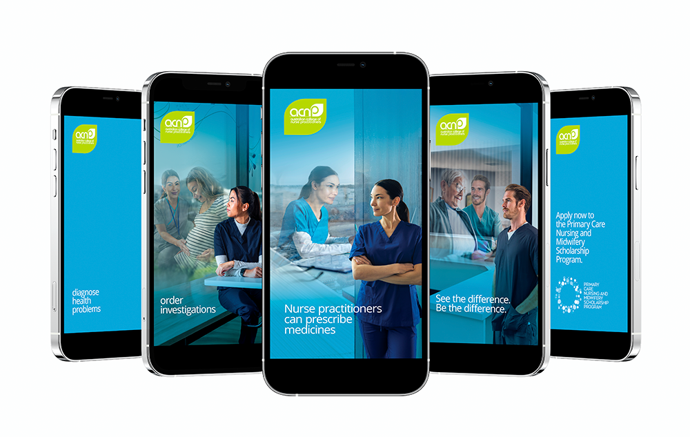 The Australian College of Nurse Practitioners (ACNP) is the national peak body for nurse practitioners and advanced practice nurses in Australia. The ACNP engaged us to develop a creative campaign that would raise the profile of nurse practitioners and endorsed midwives, while encouraging nurses to apply to the Primary Care Nursing and Midwifery Scholarship program.